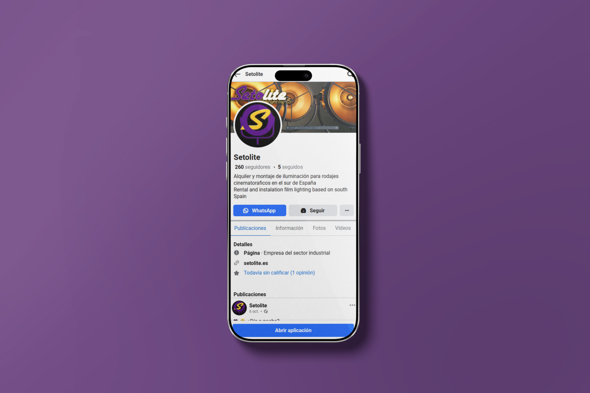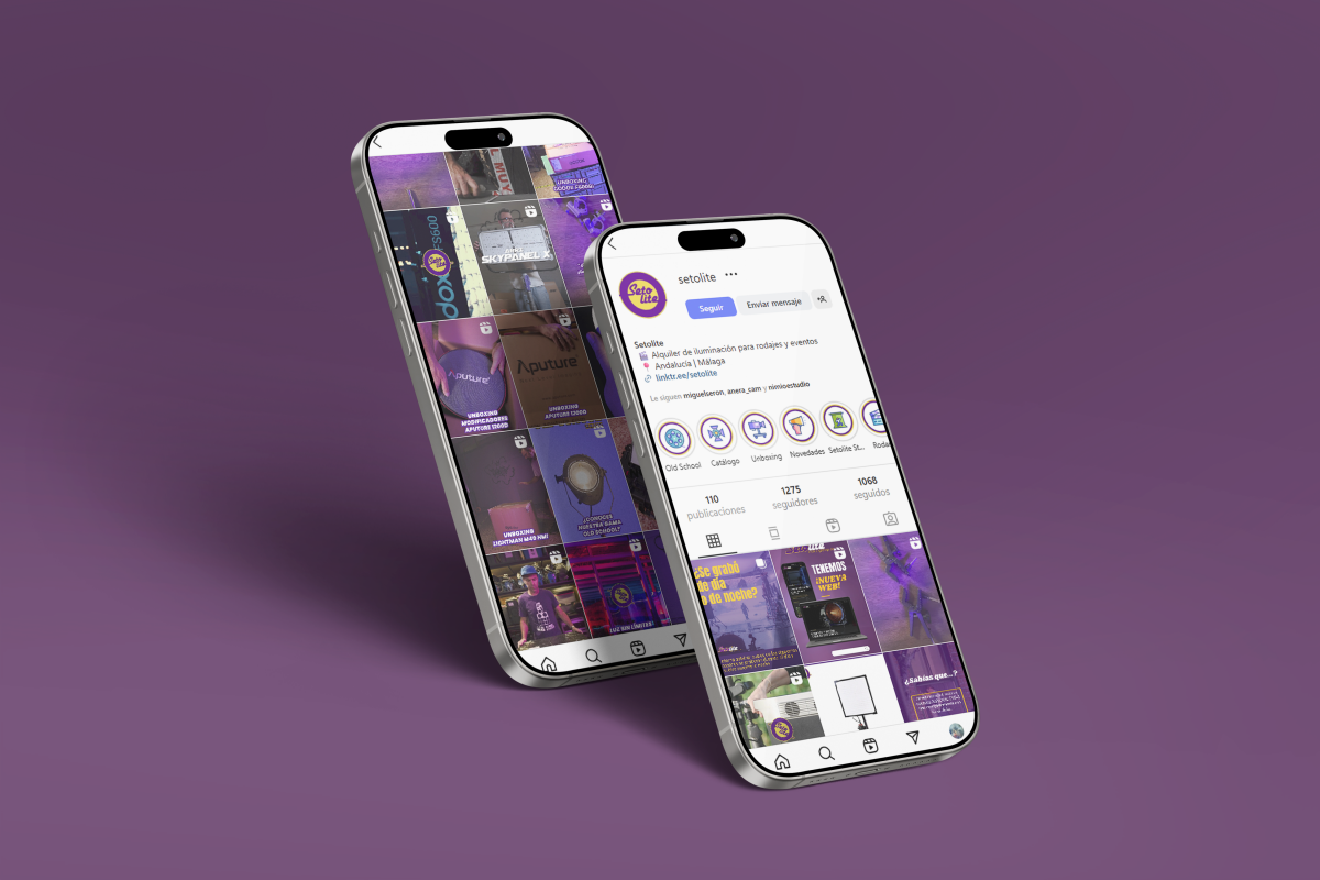 Los perfiles de Setolite en Instagram y Facebook se han gestionado con un enfoque muy profesional, centrado en mostrar sus servicios de alquiler de equipos de iluminación para rodajes y eventos. Durante los últimos meses, la estrategia ha priorizado el uso de Reels para exhibir los productos, destacar su potencia y versatilidad, y reforzar la imagen de la marca. El contenido mantiene coherencia temática y visual, con un estilo sobrio y funcional que da protagonismo a los equipos, más que al diseño gráfico o elementos decorativos.